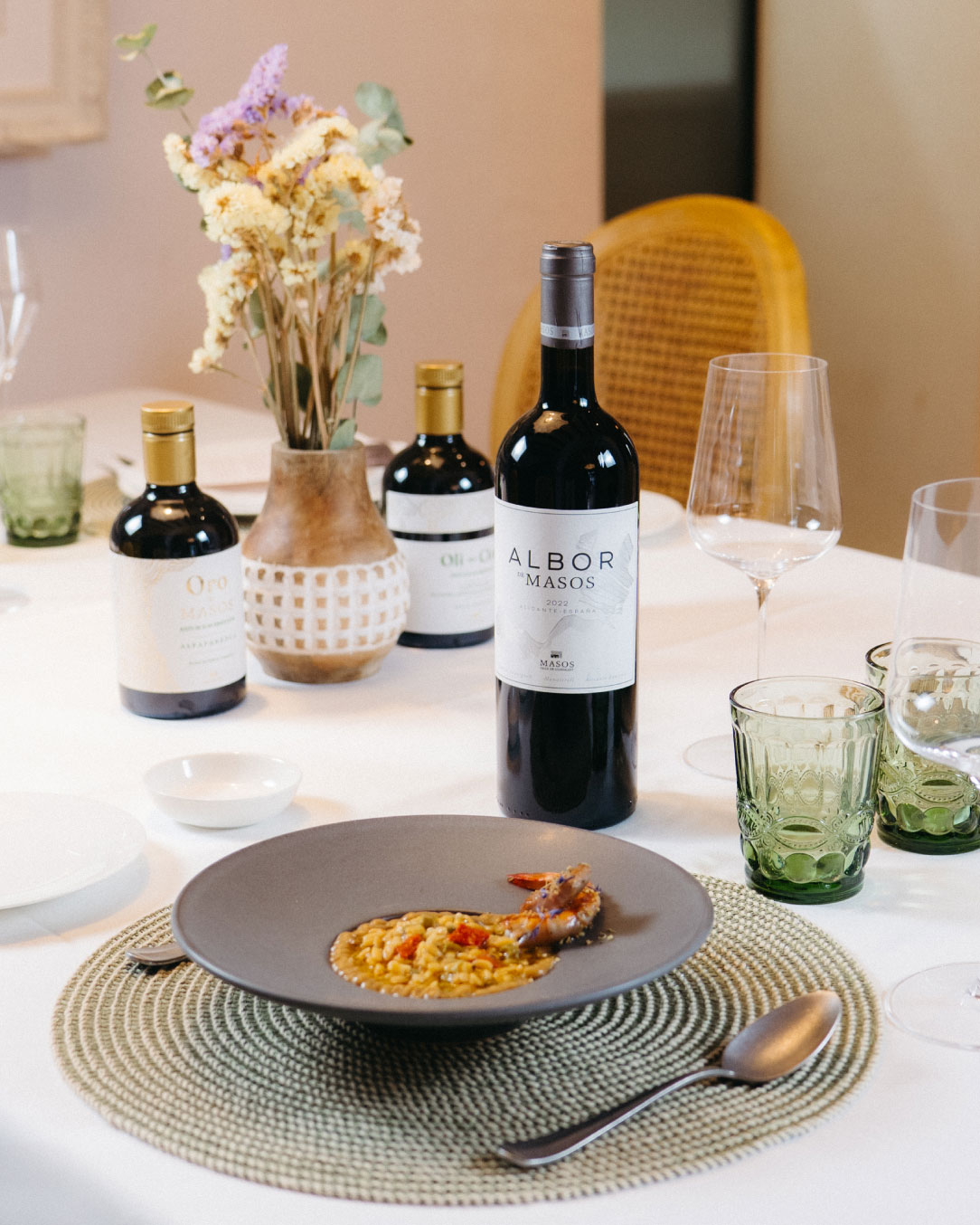 For lovers of good food, we offer a unique culinary experience that includes a visit to the vats and barrels room. Afterwards, you can enjoy a special pairing with local and seasonal products, prepared by our Chef Enrique Martínez, who has created a tasting menu based on local and KM0 products. The experience includes the tasting of the 4 MASOS labels and its extra virgin olive oil, Oro de Masos.